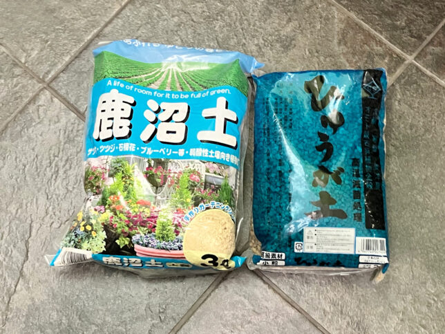 近所の盆栽園の園主さんに聞いたところ、「用土は鹿沼(かぬま)と日向(ひゅうが)を半々くらいにしたら調子が良かった」とのことだったので、早速購入してみました。
