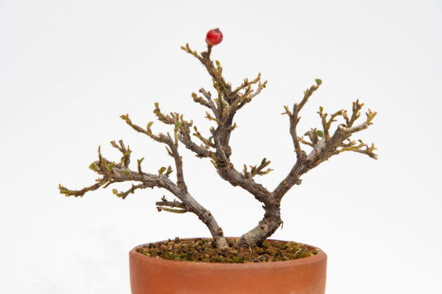 紅紫檀の葉を落とす 2026-02-20 / K / コメントする 昨年、取木を外した紅紫檀です。 ほとんどの葉が落ちていたのですが、残りの葉も強制的に落としておきました。 実が1つだけついてますね。 しかもてっぺんに。 クリスマスツリーの星みたい(^^)