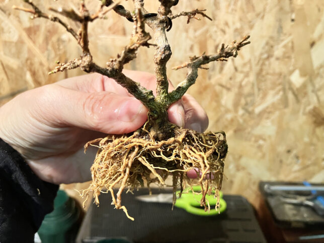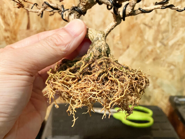 これもさっきの個体と同じような感じで根を切り詰めました。