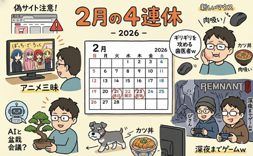でも、歯医者に行ったり、バイクで盆栽園行ったり、ぴさんとゲームしたりと、それなりに楽しかったです。